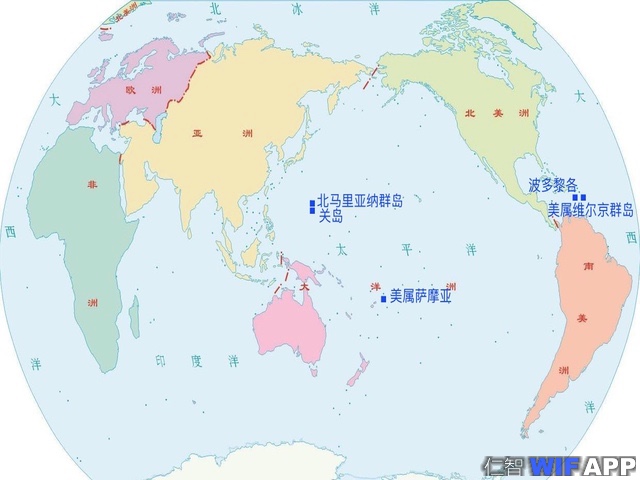 美国海外领地:北马里亚纳群岛、关岛殖民地、美属萨摩亚、美属维尔京群岛
